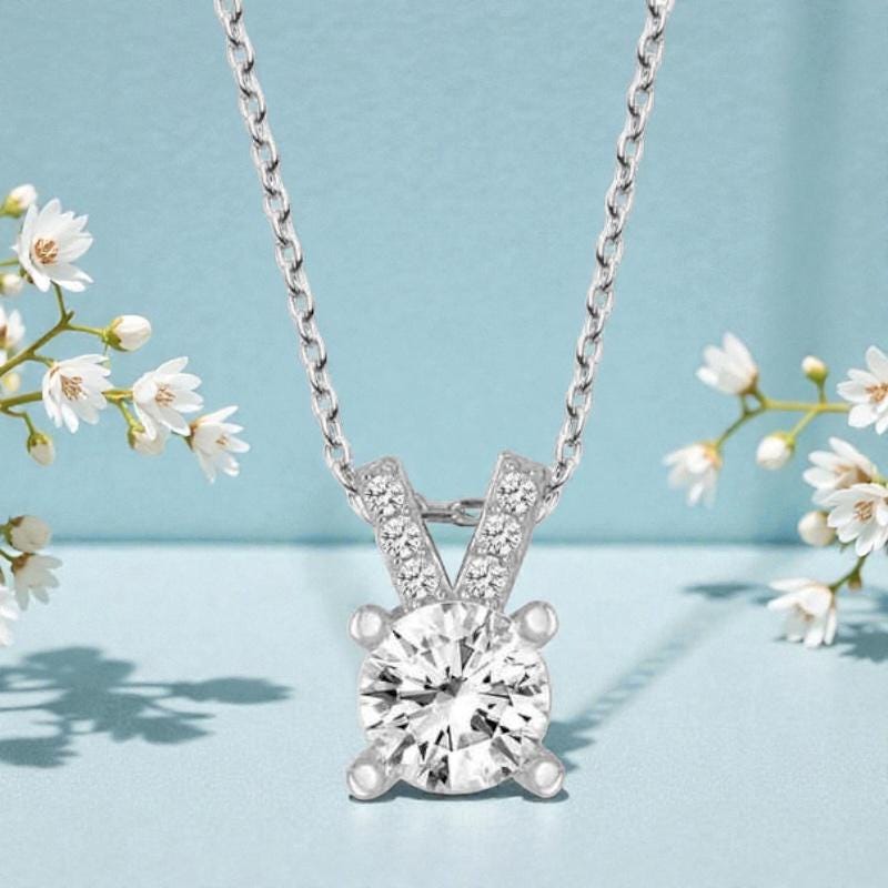 925 Sterling Silver Solitaire Pendant Necklace – Dainty Crystal Stone Jewelry for Women