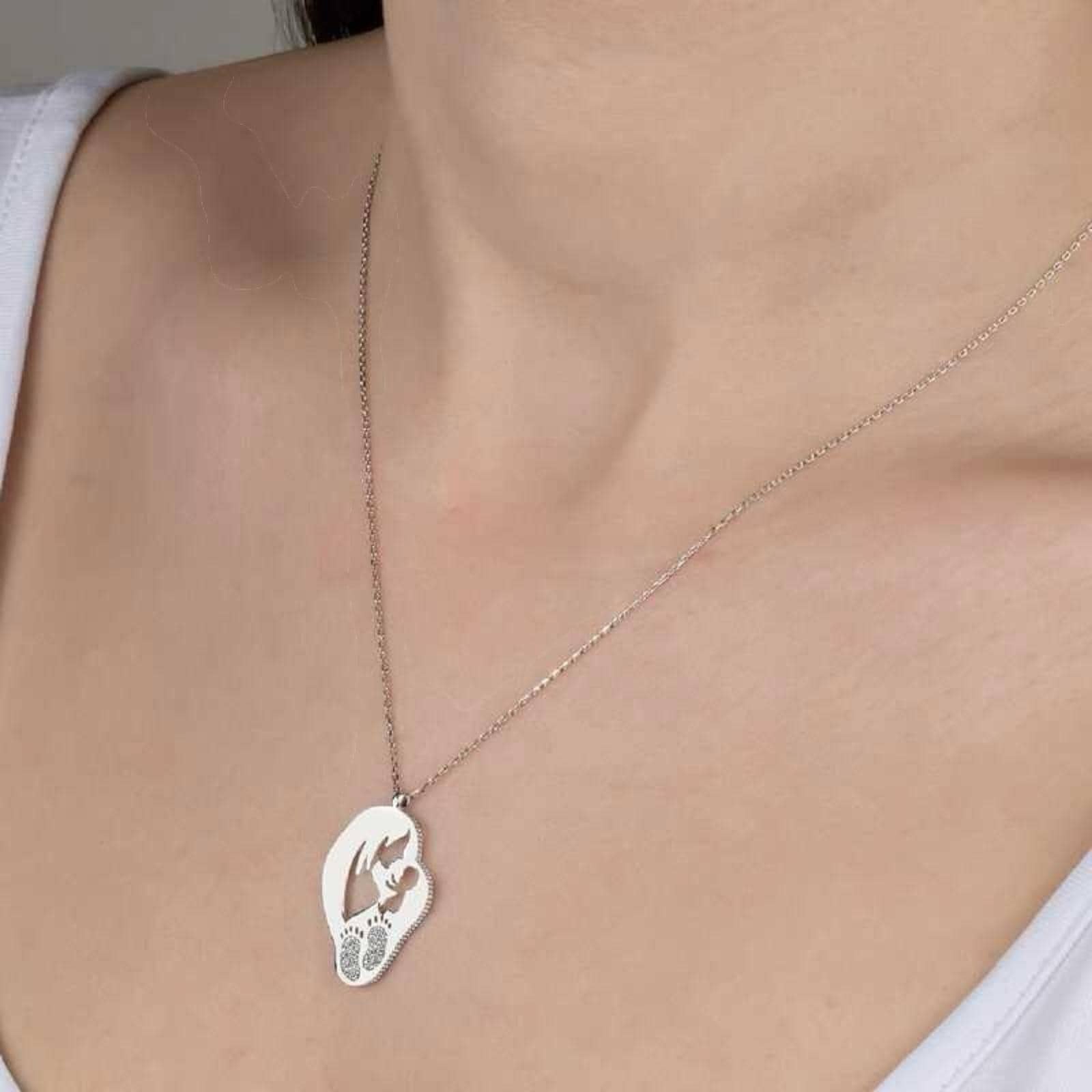 This elegant 925 sterling silver Mother & Baby Necklace symbolizes love, protection and the special bond between a mother and her child. Handcrafted with sparkling stones, it reflects light beautifully and is perfect for daily wear or as a meaningful gift.