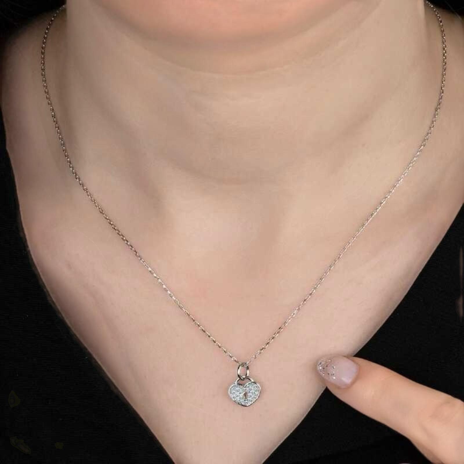 This elegant 925 sterling silver heart lock necklace features a sparkling crystal stone that adds a delicate shine to any outfit. Lightweight, feminine, and perfect for daily wear or gifting.