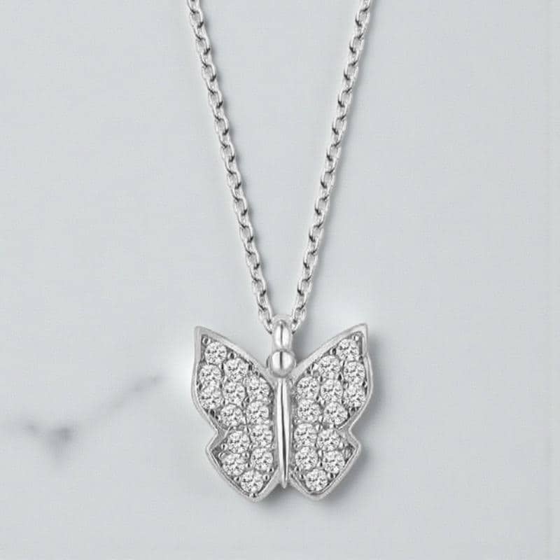 925 Sterling Silver Butterfly Pendant Necklace – Dainty Stone Kelebek Jewelry This elegant 925 sterling silver butterfly necklace features a sparkling stone detailed design, perfect for adding a soft, feminine touch to any outfit. Lightweight, dainty, and ideal for daily wear or as a meaningful gift for someone special.