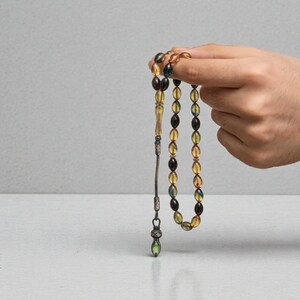 Mixed Color Amber Resin Worry Beads with 925 Silver Kazaz Tassel | Handmade Misbaha | Elegant Gift for Men