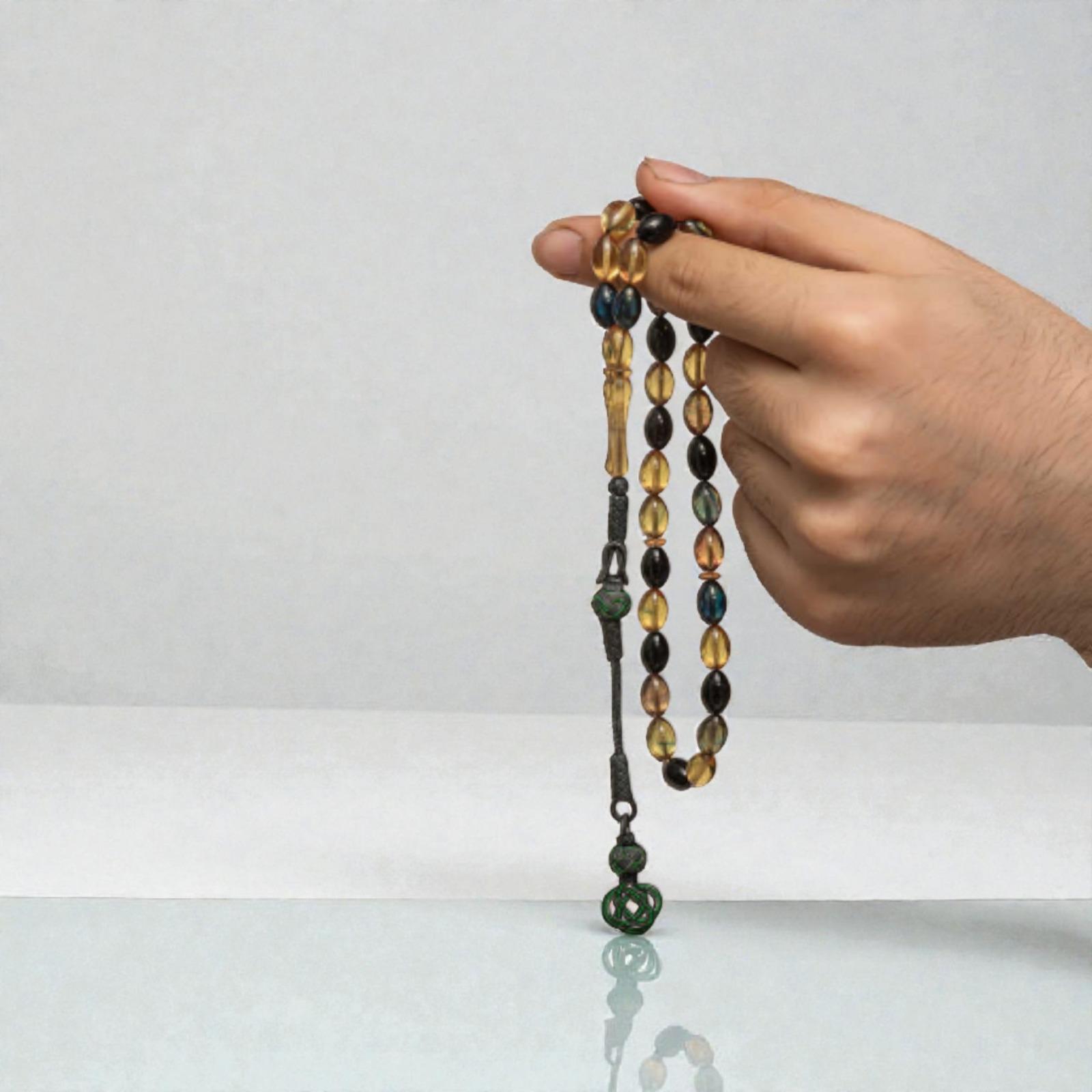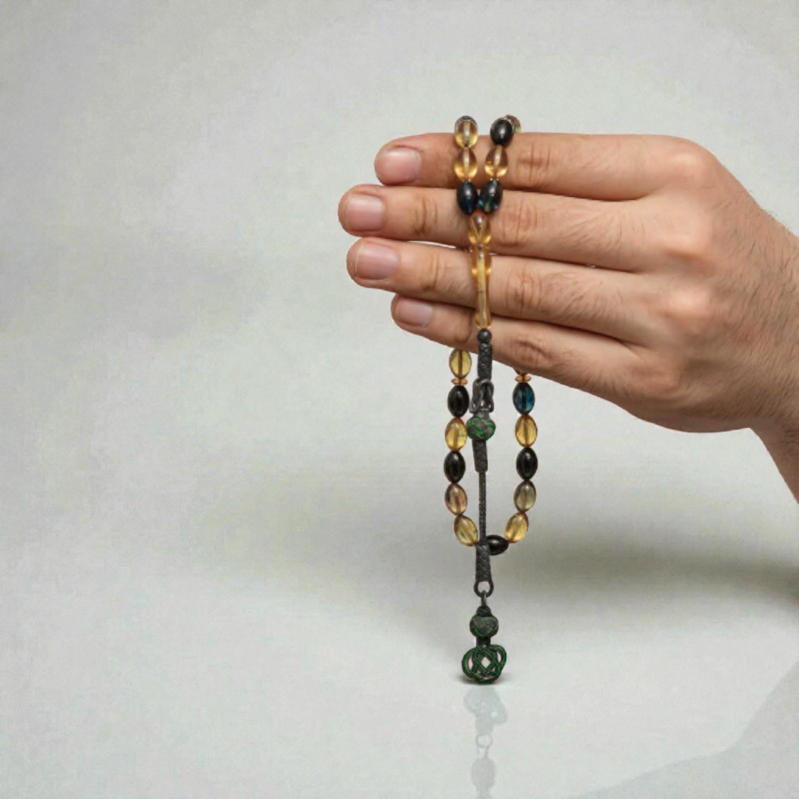 This handcrafted Sıkma amber misbaha features a beautifully detailed 1000 silver Kazaz tassel, offering both elegance and durability. Each bead is shaped with care, providing a smooth feel and rich color transitions when handled. A perfect gift for men, ideal for daily use, spiritual practice, or as a collector’s piece.