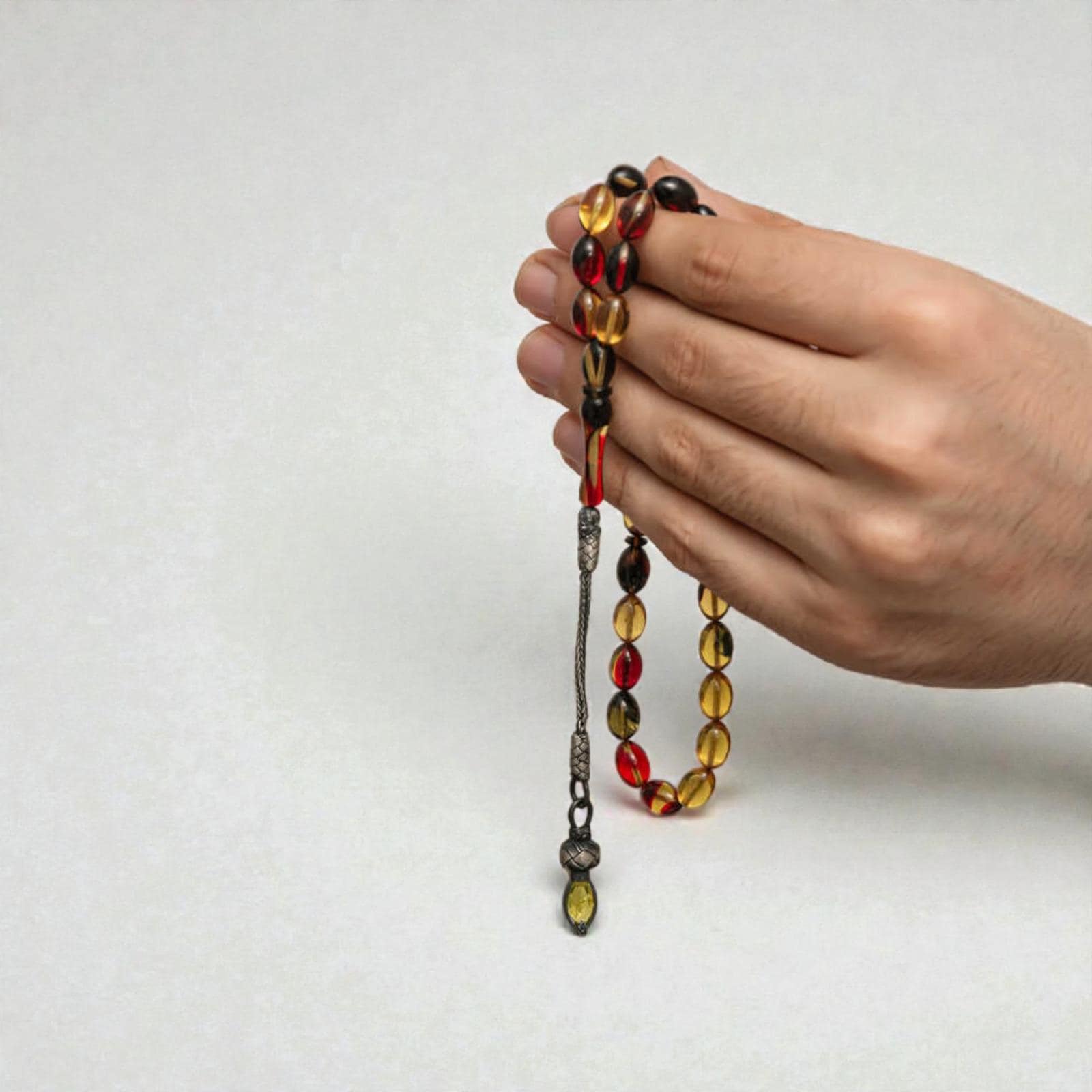 A beautifully handcrafted Pressed Amber Tasbih with 1000 Silver Kazaz Knot Tassel, designed for collectors, daily use, and meaningful gifting. Each bead reflects rich color transitions, offering a smooth feeling in the hand and a premium look. The sterling quality silver knot tassel adds durability and traditional elegance.