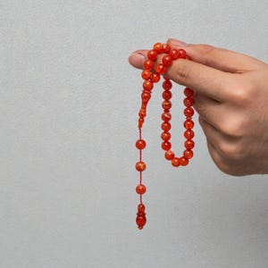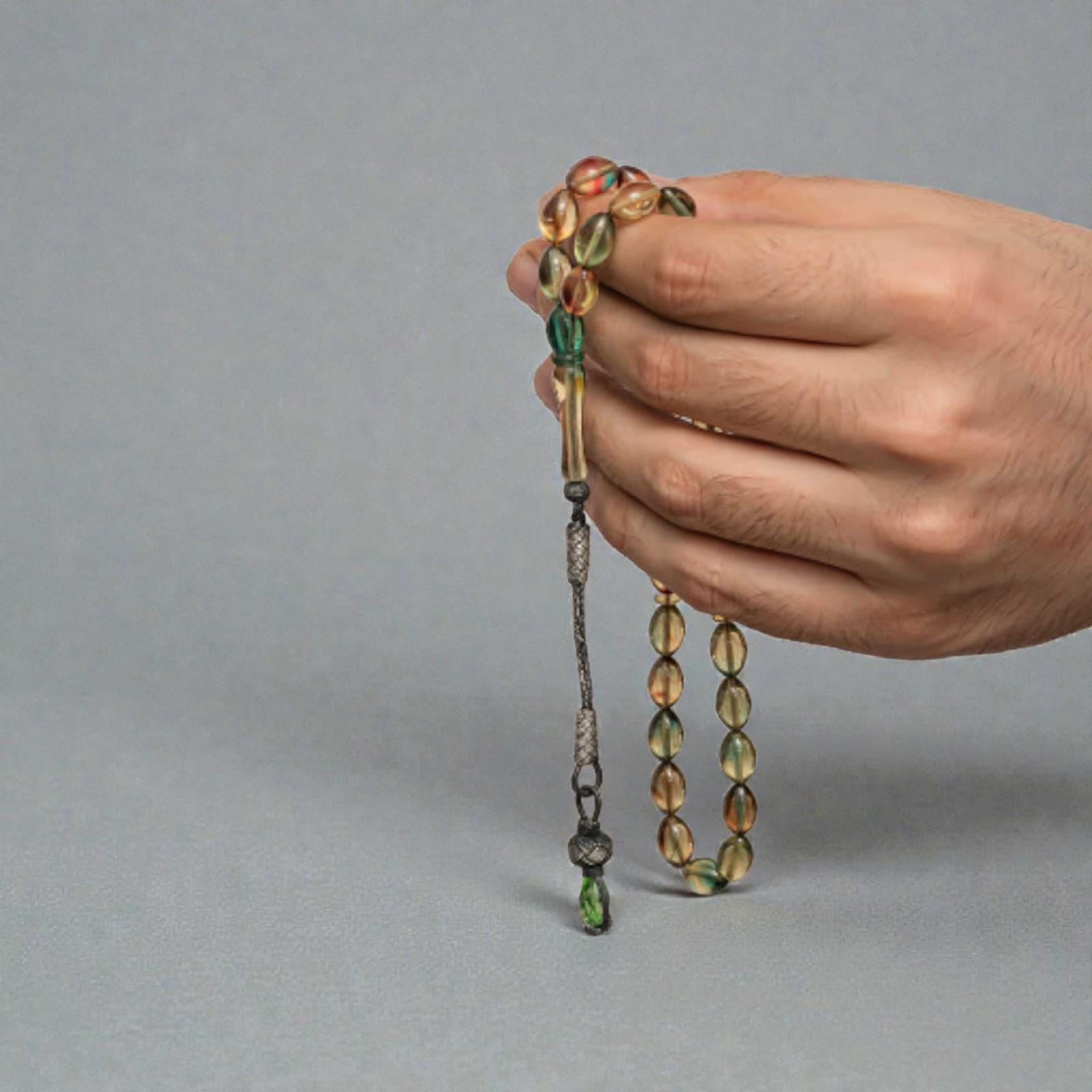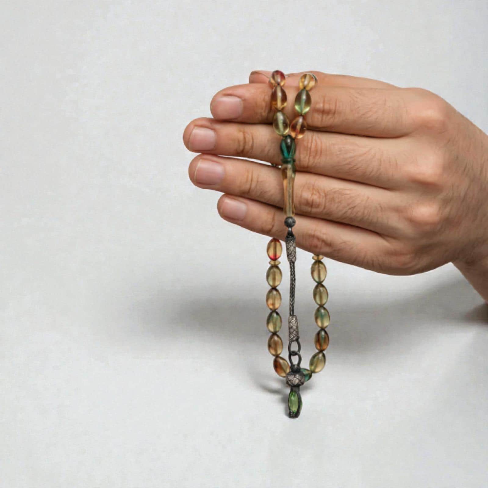 This handcrafted misbaha features beautifully polished pressed amber beads combined with a 1000-grade silver Kazaz knot tassel. Each bead offers a smooth glide, warm touch, and vibrant color reflections. A perfect accessory for daily use, meditation, relaxation, or as a luxury collectible piece.