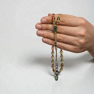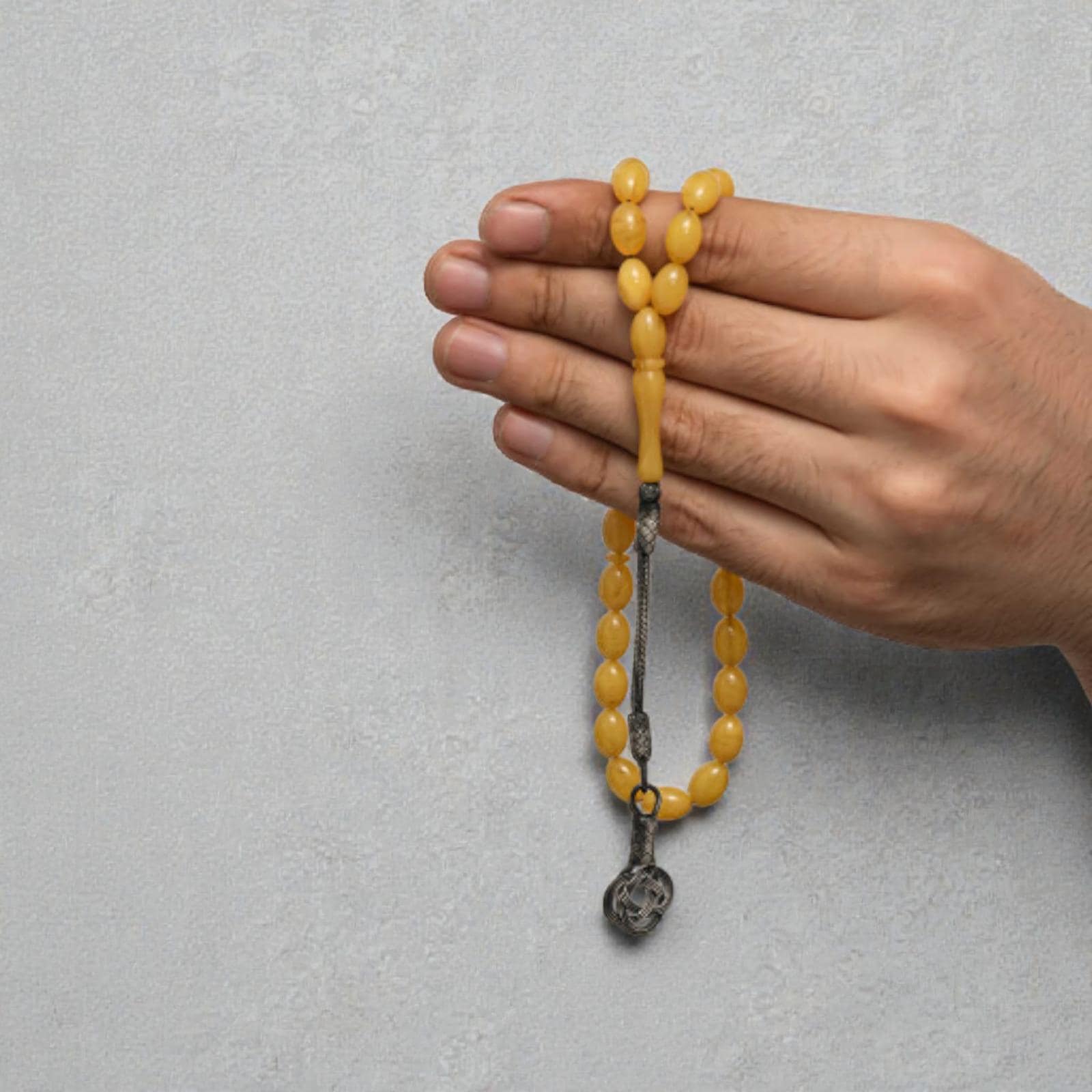 Handcrafted misbaha made from high quality Sıkma amber and finished with a traditional 1000 silver Kazaz tassel. Smooth oval beads provide a perfect flow in the hand, while the unique amber texture makes each piece one of a kind. Ideal for daily use, meditation, stress relief or as a meaningful gift for him. A beautiful collectible piece for tasbih enthusiasts.