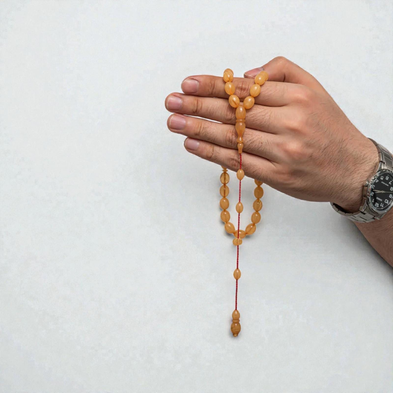 Handmade Pressed Amber Tasbih Prayer Beads – Classic Turkish Rosary for Men