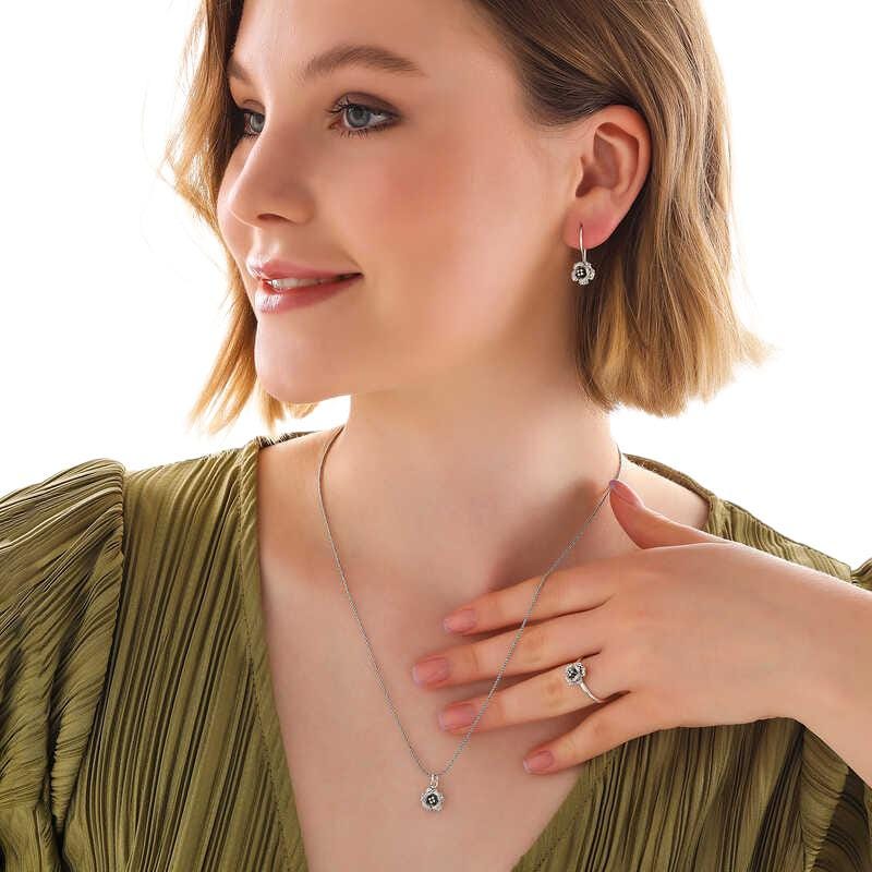 Sterling Silver Rose Jewelry Set 925 Silver Necklace Earrings Ring