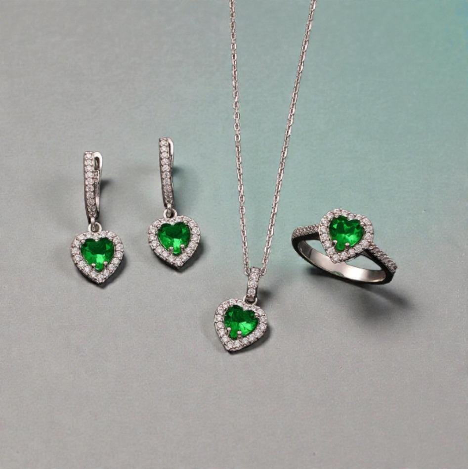 Celebrate love with elegance. This green heart jewelry set is crafted from 925 sterling silver and finished with rhodium plating for long-lasting shine and durability.