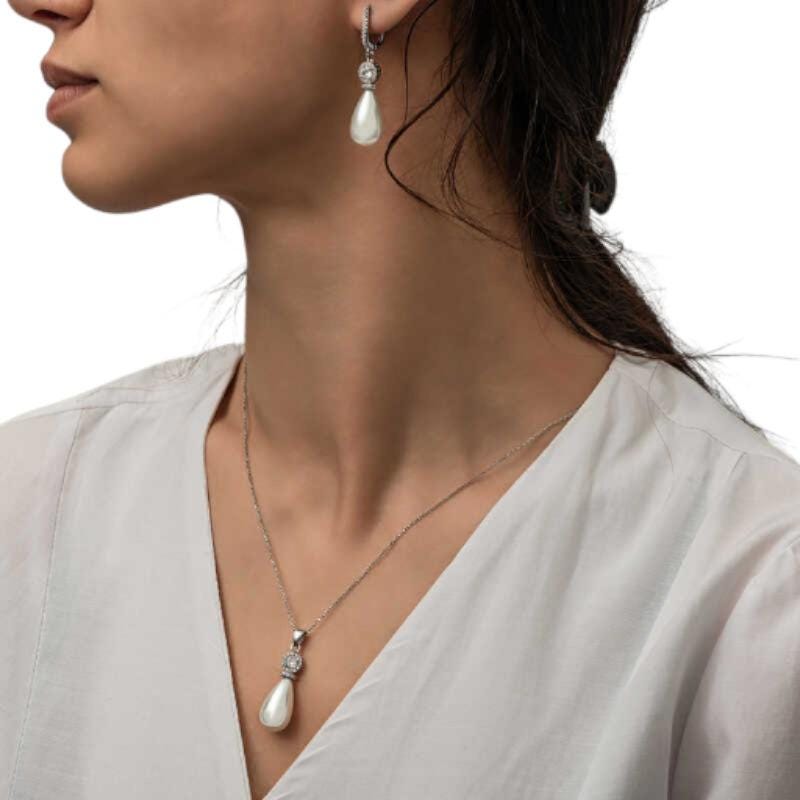 Crafted from 925 sterling silver and finished with rhodium plating, this set offers long-lasting shine and excellent resistance to tarnishing. The delicate cultured pearl drops add a refined and classic touch suitable for any occasion.
