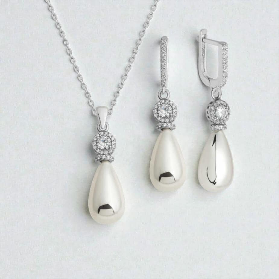 925 Sterling Silver Pearl Drop Jewelry Set | Elegant Rhodium Plated Women Gift