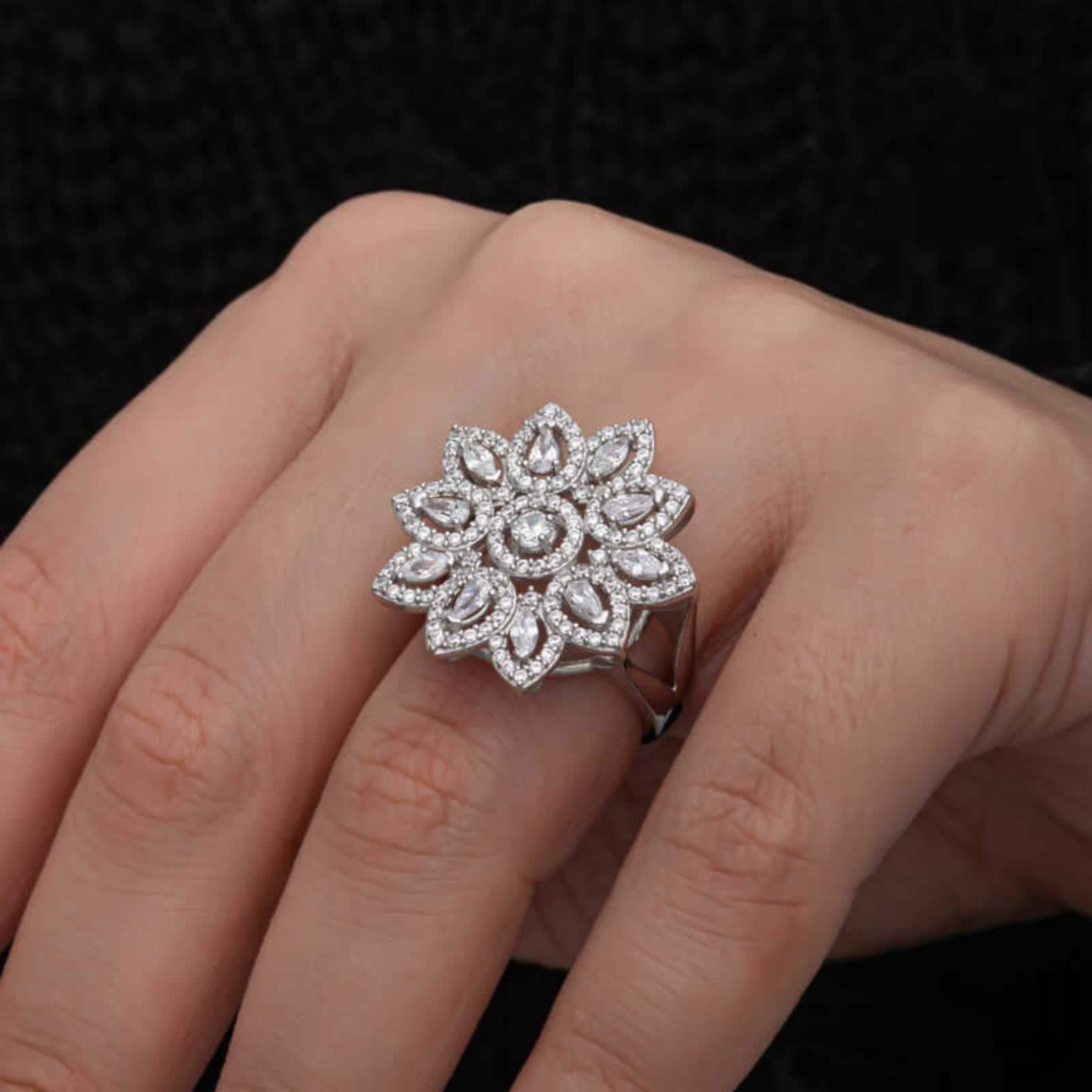 This flower jewelry set is crafted to express love, elegance, and timeless beauty. Designed with sparkling zircon and baguette stones, the floral motif represents affection and femininity, making it a meaningful gift for someone special.