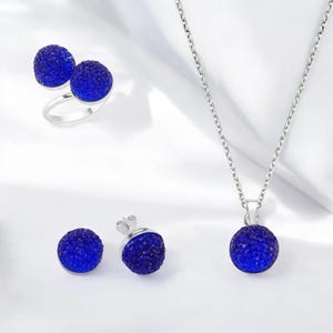 The set includes a ring, pendant and matching earrings, and comes with a 45 cm sterling silver chain. Finished with rhodium plating for long-lasting shine, this handmade set is perfect for special occasions or as a meaningful gift.