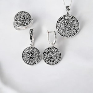 Details • 925 Sterling Silver • White Cubic Zirconia Stones • Rhodium Plated • Necklace & Earrings Set • Chain Length: 45 cm • Handmade Jewelry • Weight: approx. 12.00 g • Weight may vary ±10%