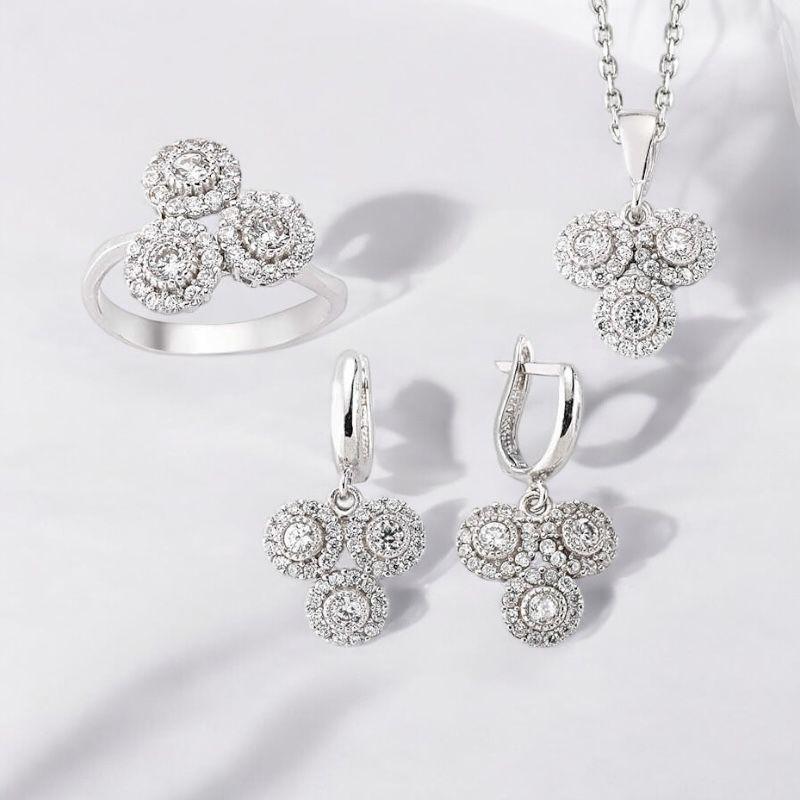 Cubic Zirconia Jewelry Set for Women 925 Sterling Silver Rhodium Plated Set