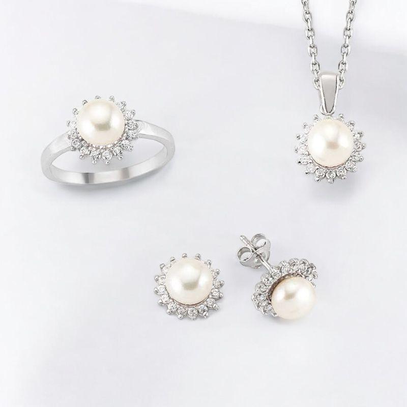 This elegant pearl and cubic zirconia jewelry set for women is crafted from 925 sterling silver and finished with rhodium plating for lasting shine. The combination of a classic pearl and sparkling zircon stones creates a timeless and refined look.