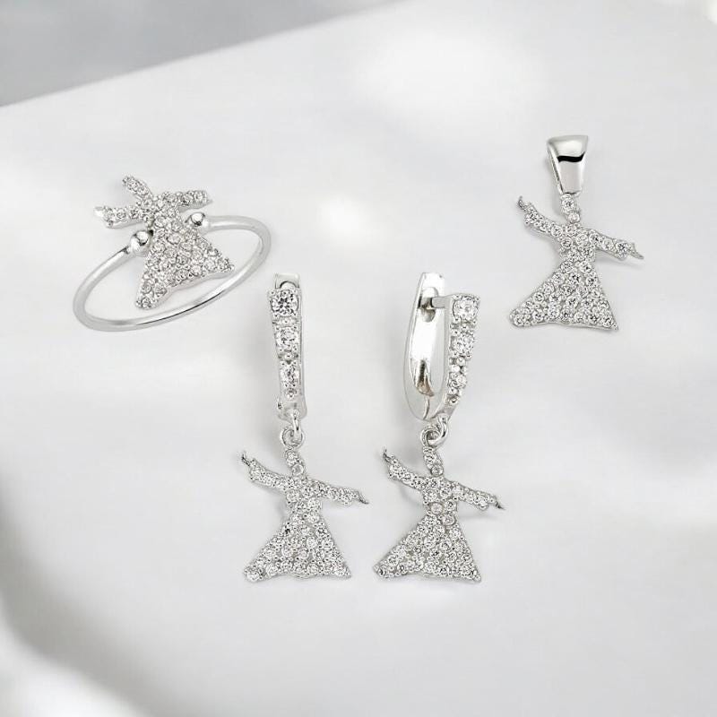 Sterling Silver Whirling Dervish Jewelry Set for Women | 925 Silver Cubic Zirconia Set