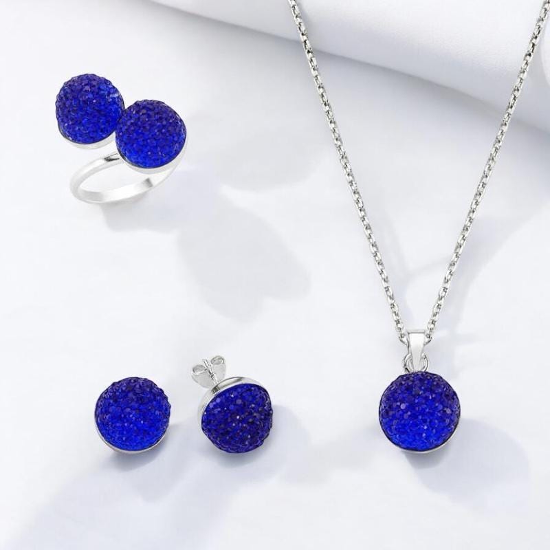 This elegant jewelry set features navy blue crystal stones that sparkle like stars. Crafted from 925 sterling silver and finished with rhodium plating, it offers long-lasting shine and durability.
