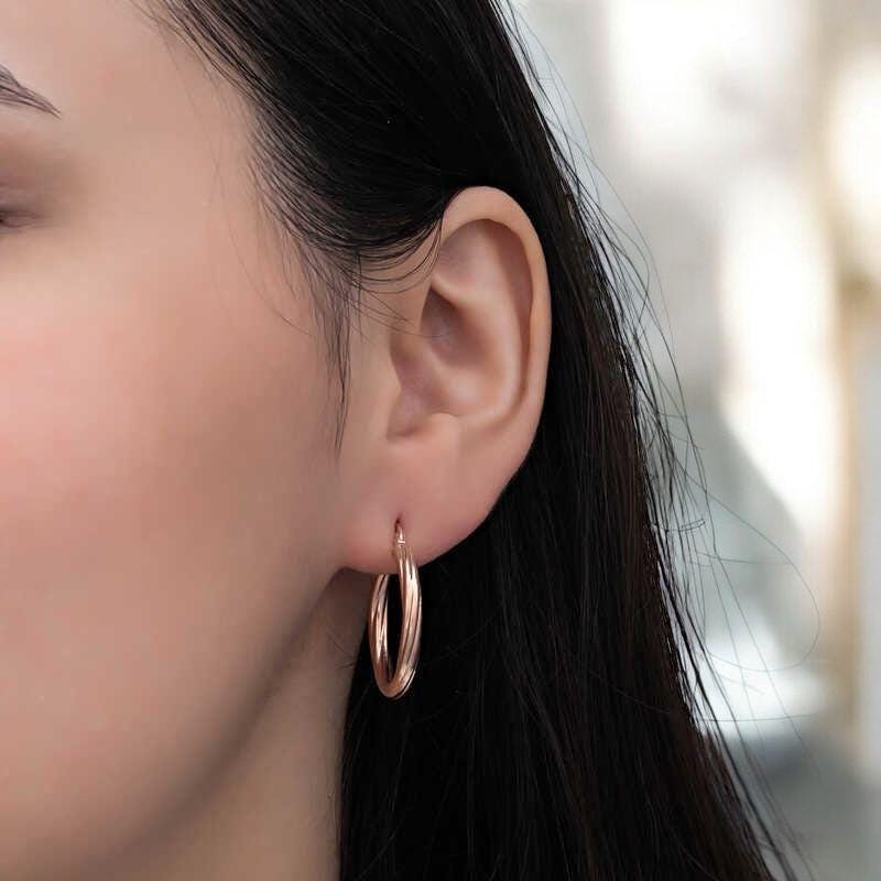 Rose Gold Twisted Hoop Earrings for Women | 925 Sterling Silver 3mm Huggie Hoop Earrings