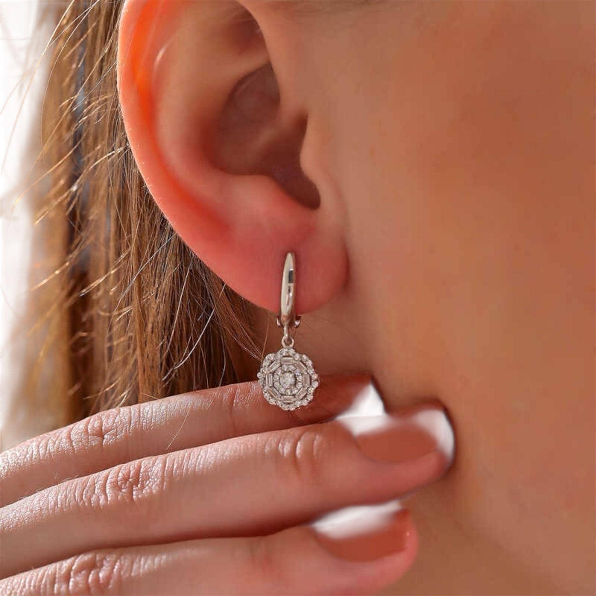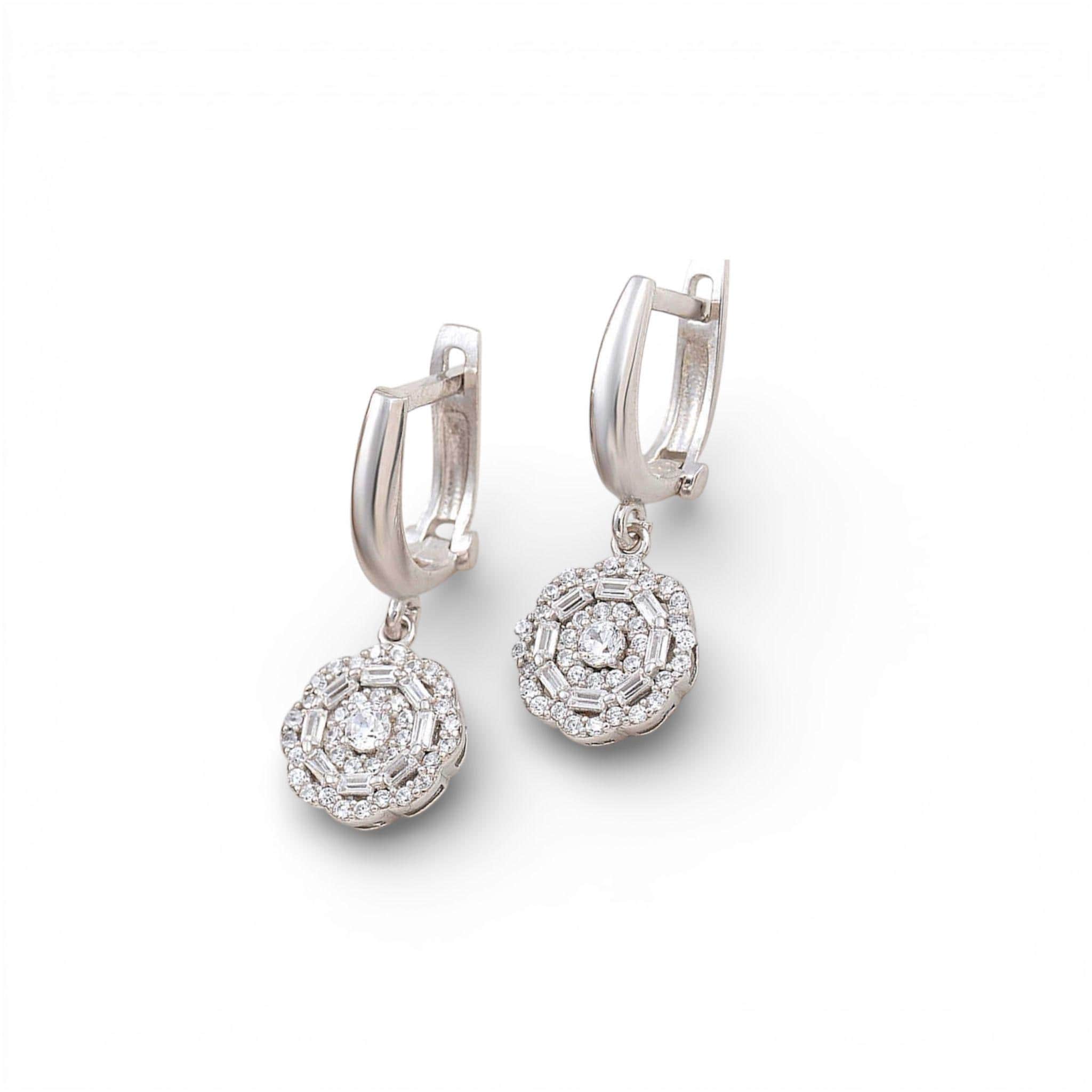 Details • 925 Sterling Silver • Rhodium Plated • Flower Design • Cubic Zirconia & Baguette Stones • Handmade Jewelry • Width: 1.00 cm • Height: 2.60 cm • Weight: approx. 3.50 g • Weight may vary ±10%
