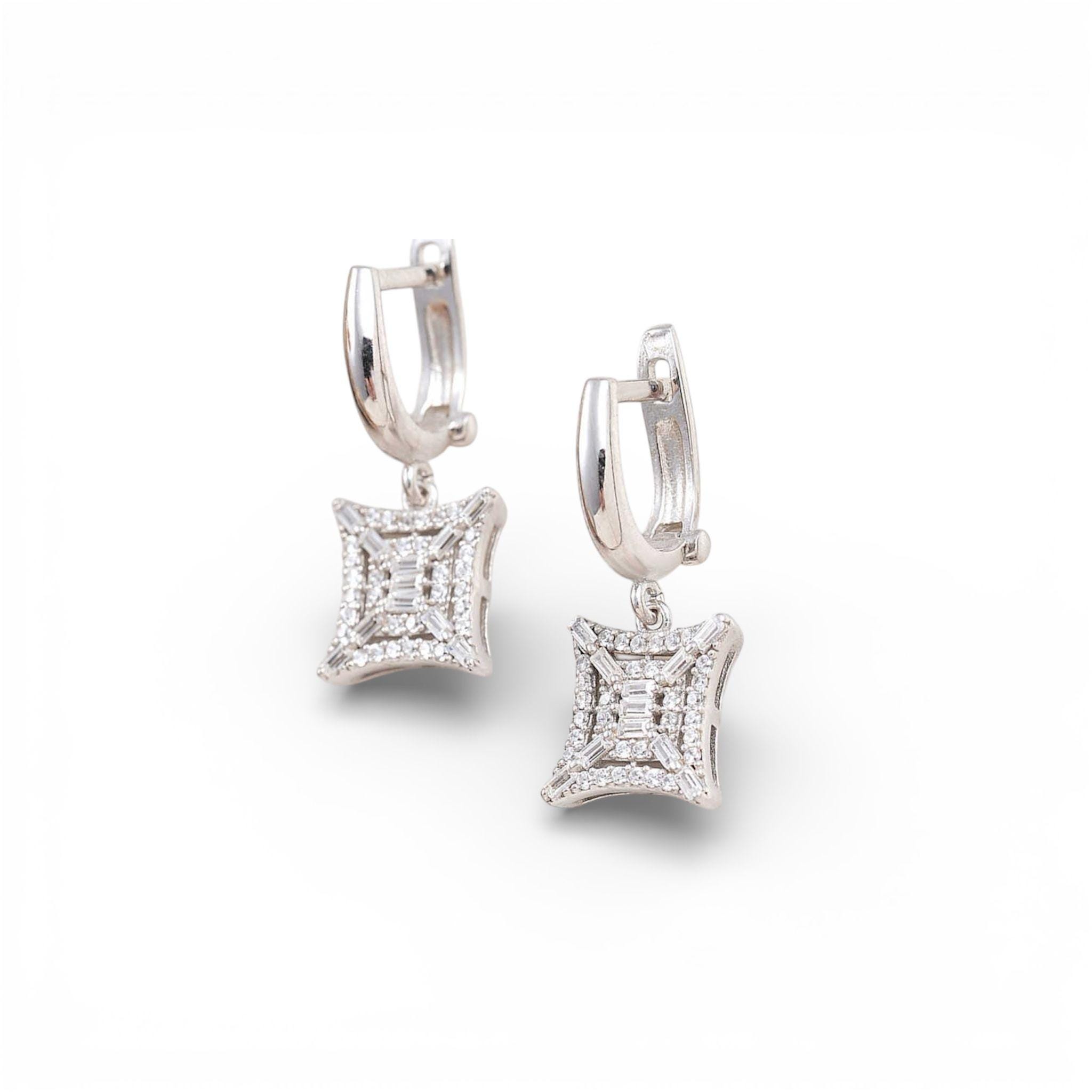 Square Cubic Zirconia Earrings for Women | 925 Sterling Silver Rhodium Plated Jewelry