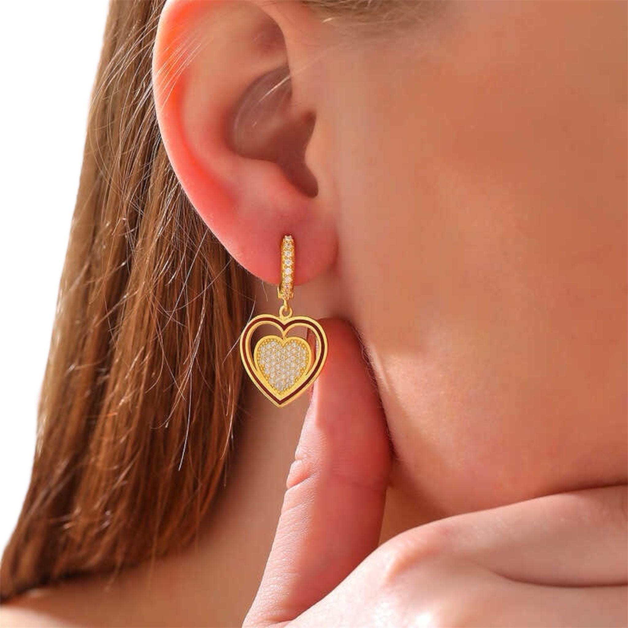 Gold Plated Heart Dangle Earrings for Women | 925 Sterling Silver Cubic Zirconia Jewelry