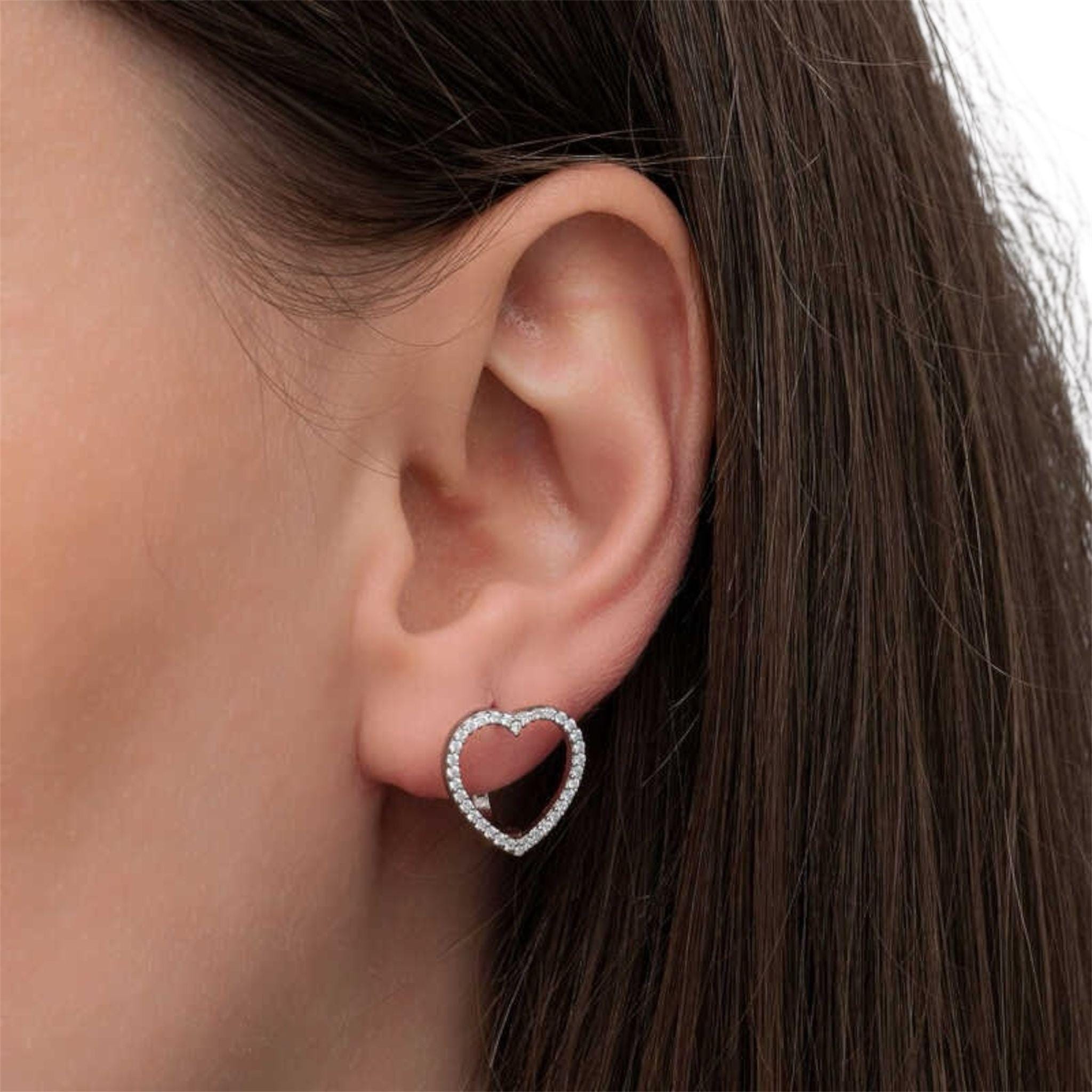 Details • 925 Sterling Silver • Rhodium Plated • Heart Design • Cubic Zirconia Stone • Elegant & Minimal Style • Handmade Jewelry • Width: 1.50 cm • Height: 1.50 cm • Weight: approx. 3.40 g • Weight may vary ±10%
