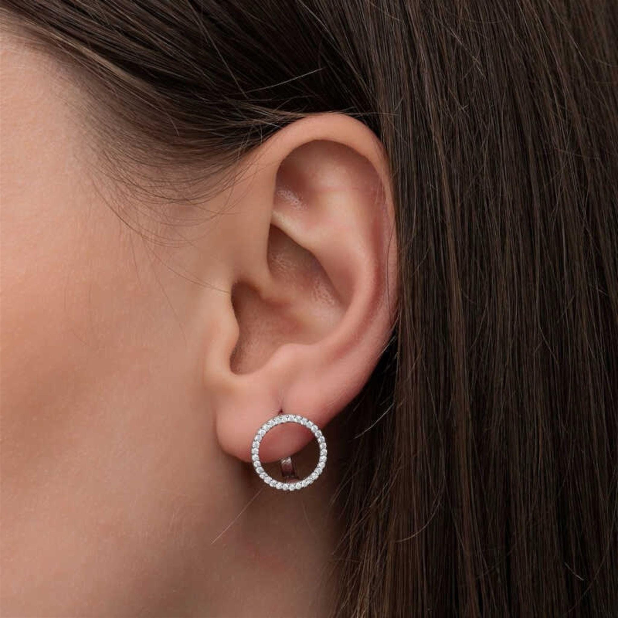 These elegant round earrings for women are crafted from 925 sterling silver and finished with high-quality rhodium plating for long-lasting shine.
