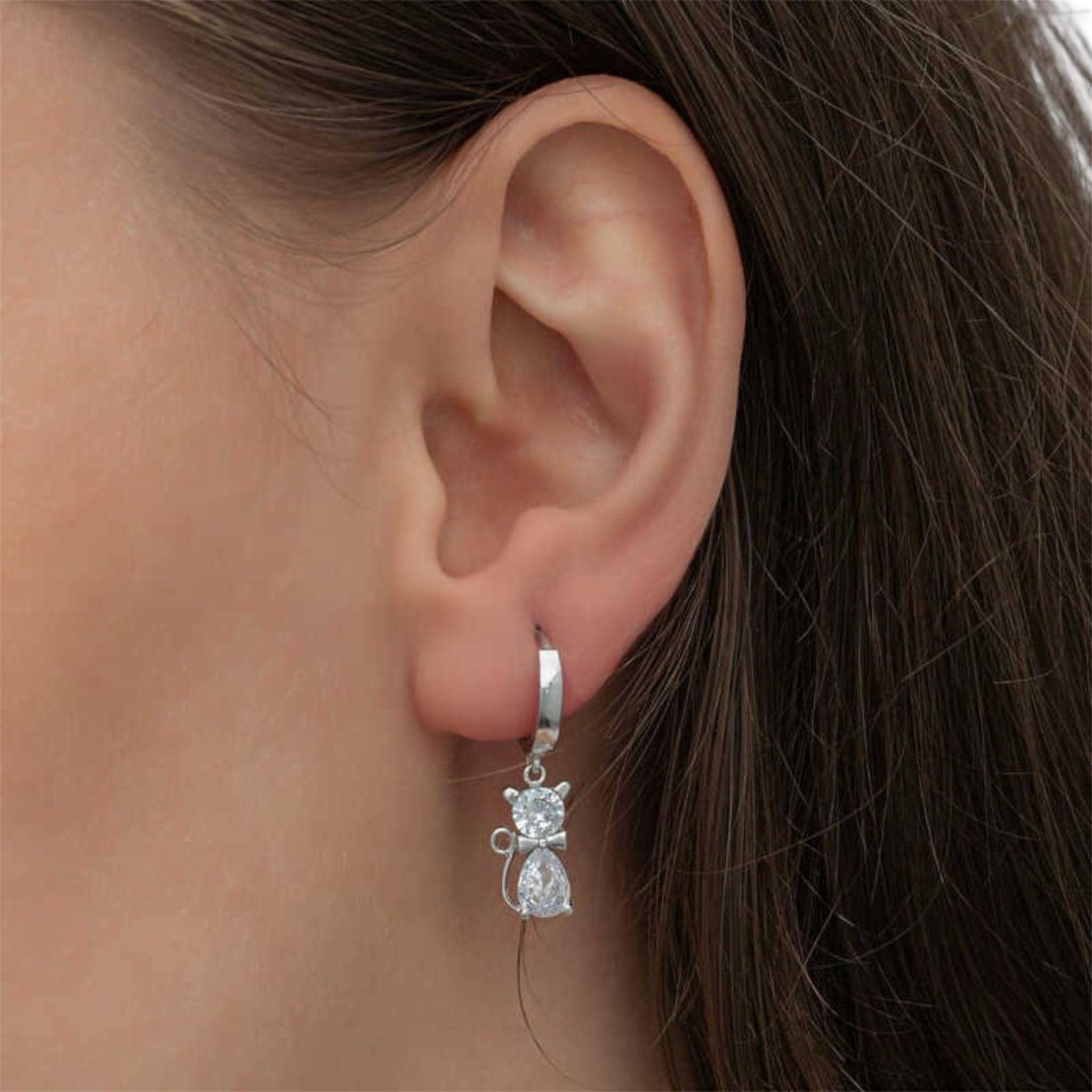 These adorable cat dangle earrings for women are crafted from 925 sterling silver and finished with a durable rhodium plating for long-lasting shine.