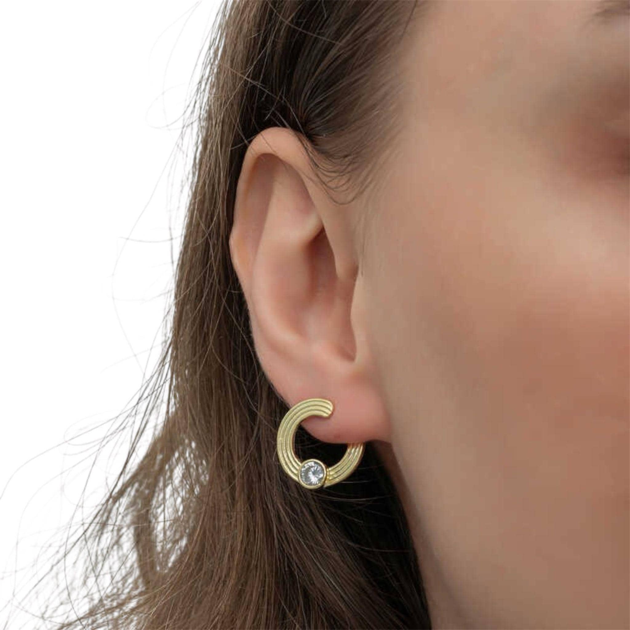 Details • 925 Sterling Silver • Gold Plated • Solitaire Cubic Zirconia • Hoop Stud Earrings • Handmade Jewelry • Width: 1.70 cm • Height: 1.60 cm • Weight: approx. 4.00 g • Weight may vary ±10%