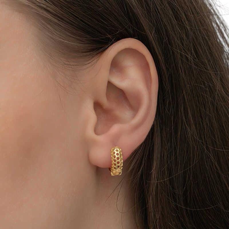Gold Honeycomb Hoop Earrings for Women | 925 Sterling Silver Minimalist Hoops