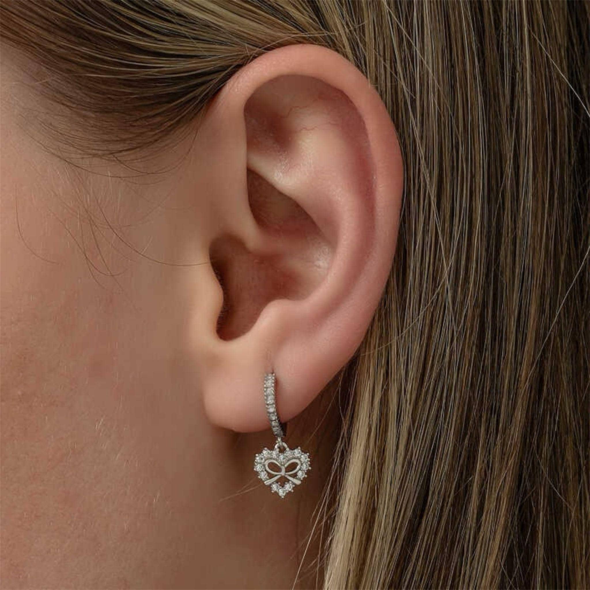 Heart Bow Dangle Earrings for Women 925 Sterling Silver Rhodium Plated