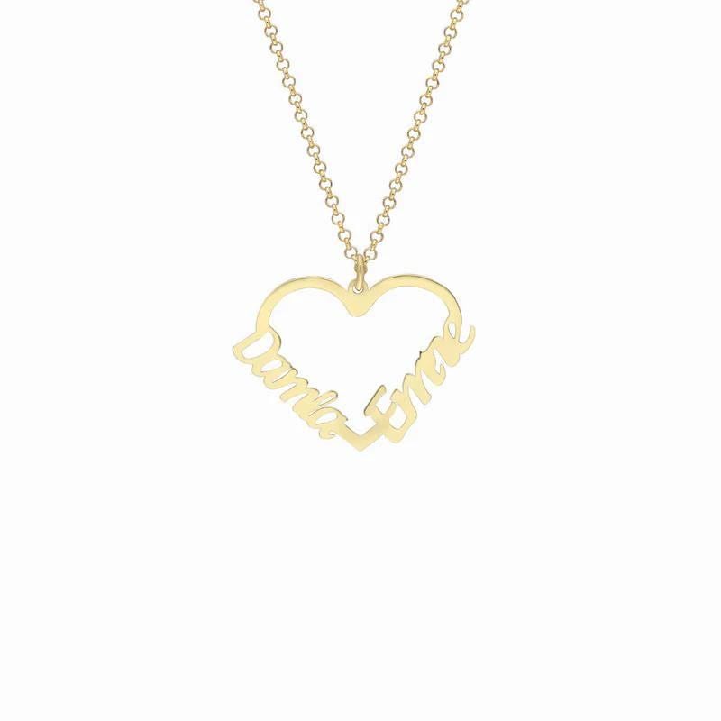 Two Name Heart Necklace 925 Sterling Silver Personalized Name Necklace