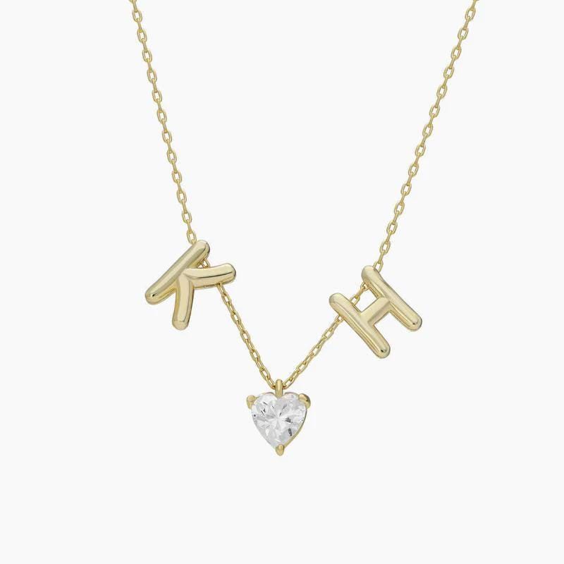 This elegant initial heart necklace set of two is crafted from high quality 925 sterling silver. Featuring a domed heart design with personalized initial letters, this necklace set offers a timeless and romantic style.