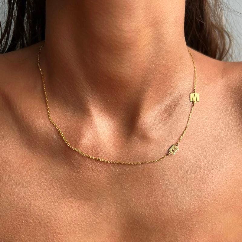 This minimal double initial necklace is crafted from 925 sterling silver and designed with a clean bridge-style letter detail.