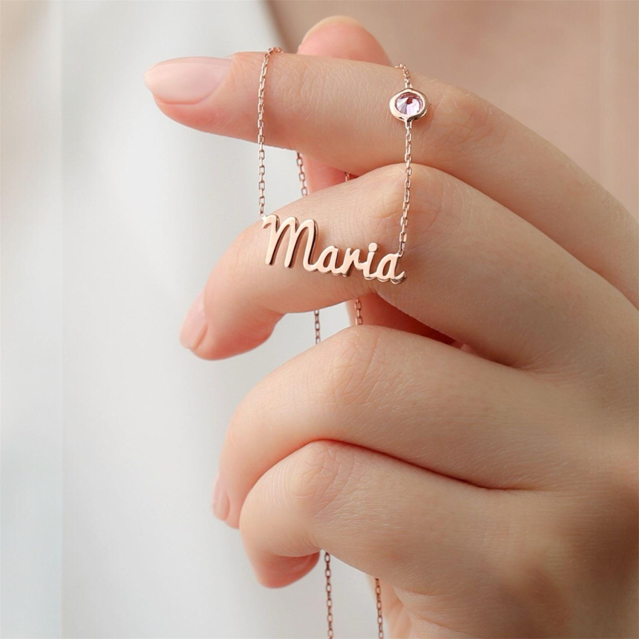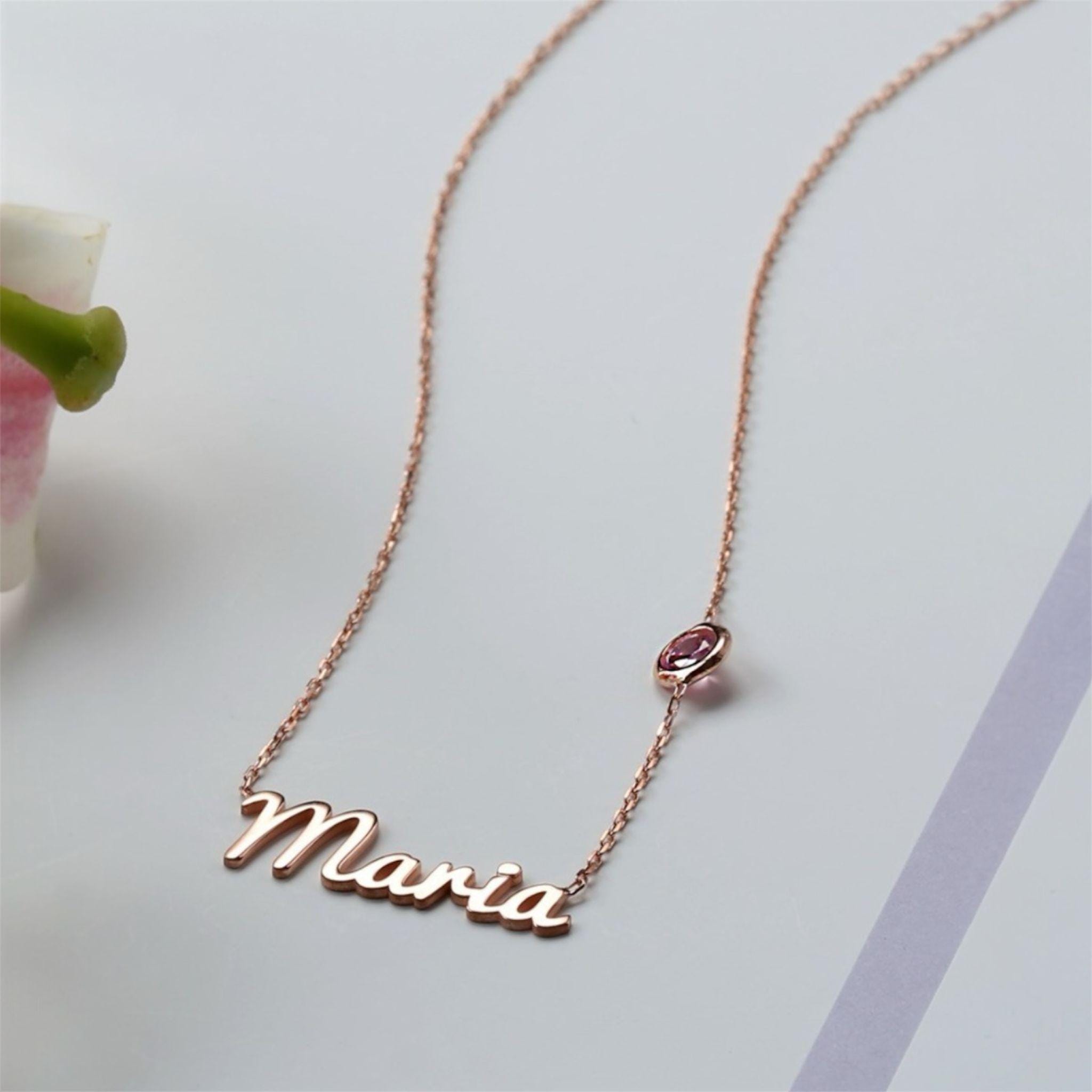 This elegant stone name necklace is crafted from high quality 925 sterling silver and finished with a delicate gemstone detail.