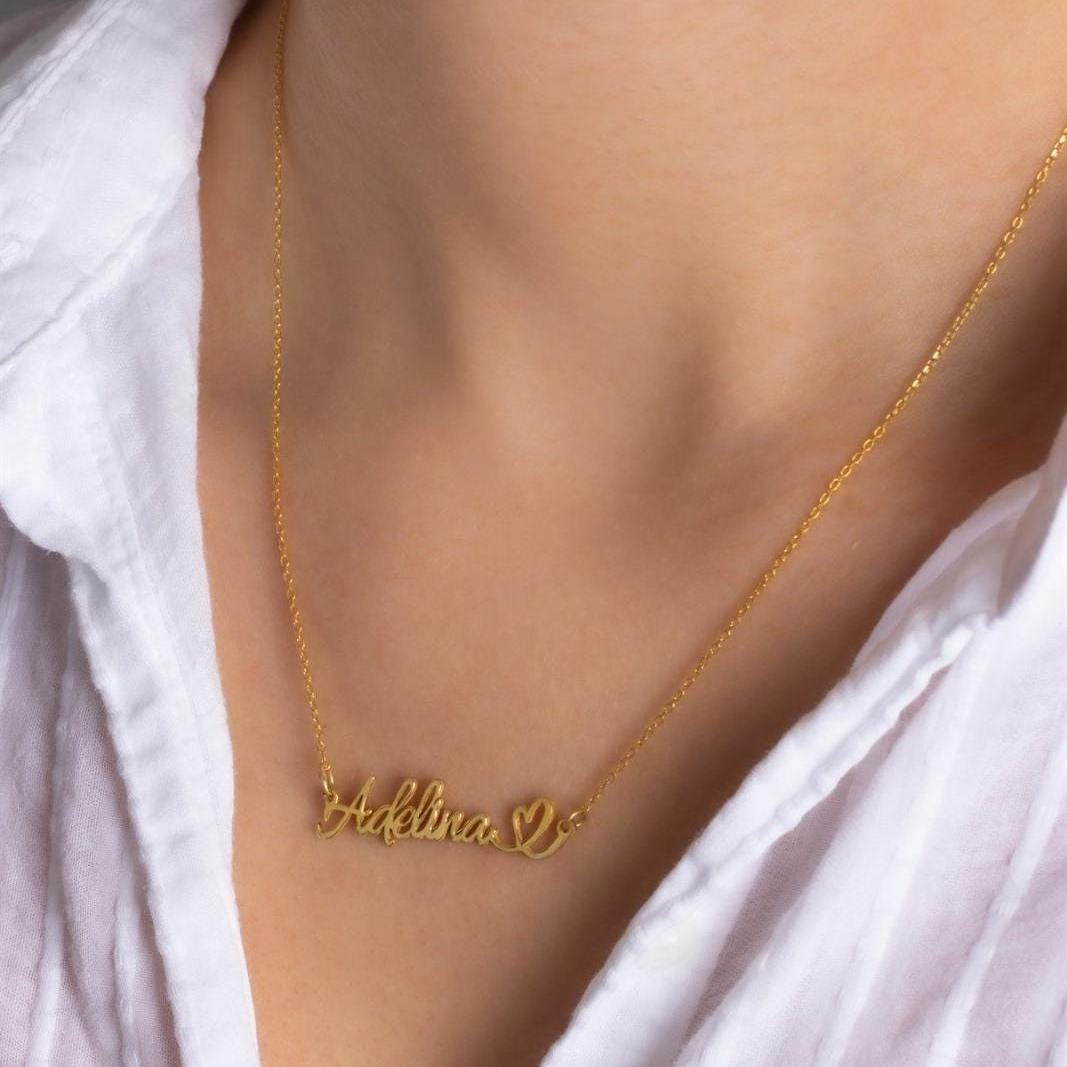 Personalized Heart Name Necklace – 925 Sterling Silver Custom Name Necklace Gift