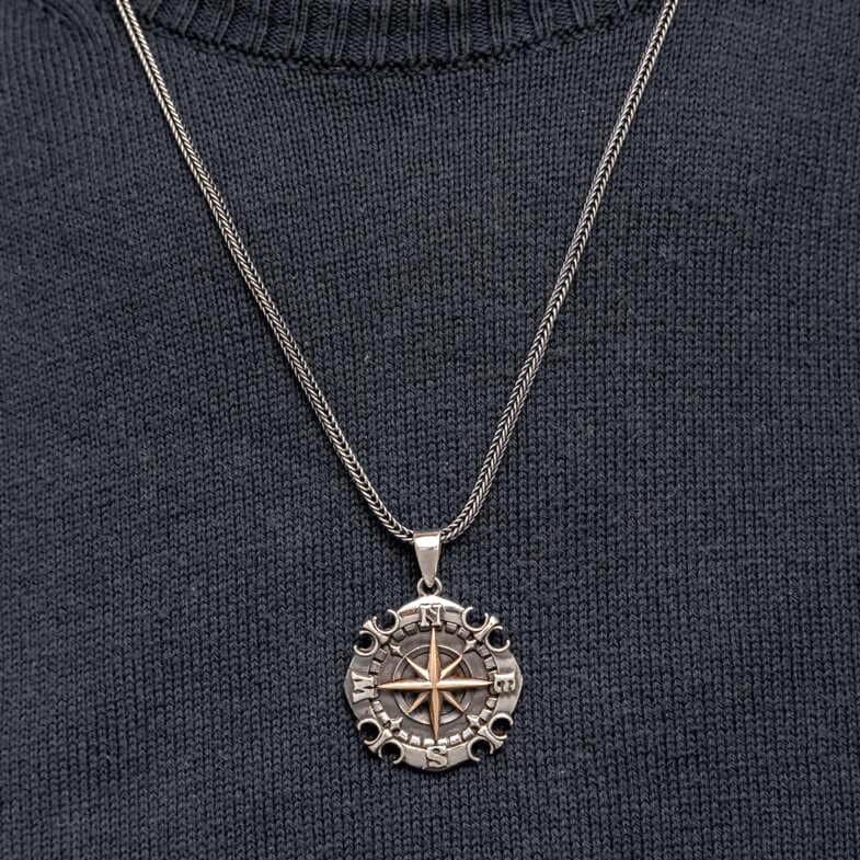 925 Silver Oxidized Compass Men Necklace