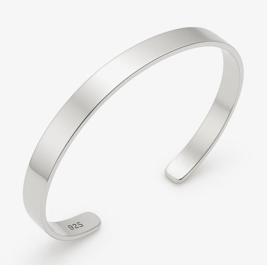 925 Silver Minimalist Cuff Bracelet for Men