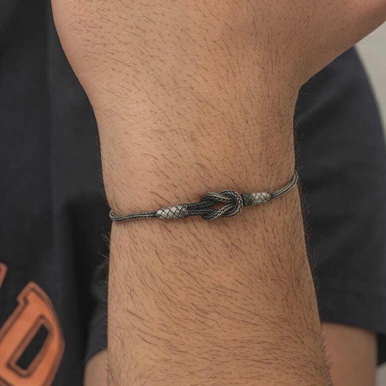 This handmade braided knot bracelet is crafted from 1000 pure silver using traditional weaving techniques. Its elegant knot detail represents strength and timeless style, making it a perfect accessory for everyday wear or special occasions.