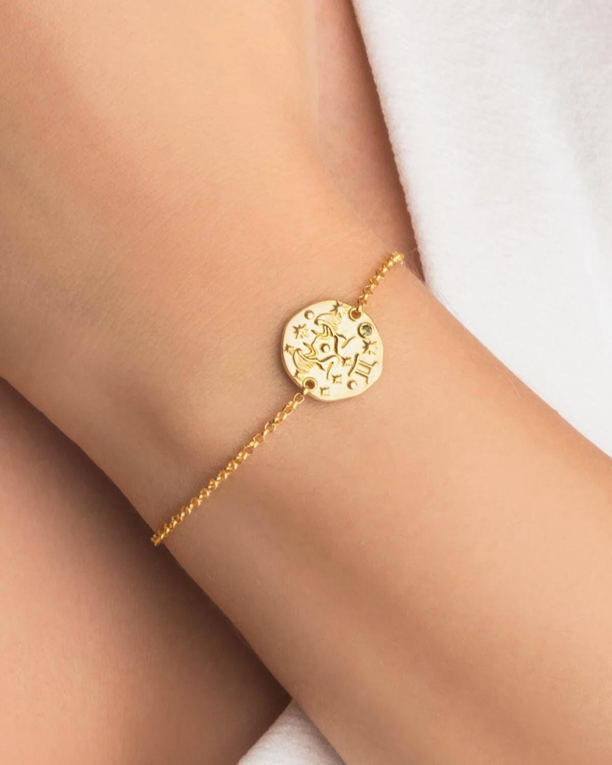 Gemini Zodiac Bracelet 18K Gold Plated 925 Silver Horoscope Jewelry Gift