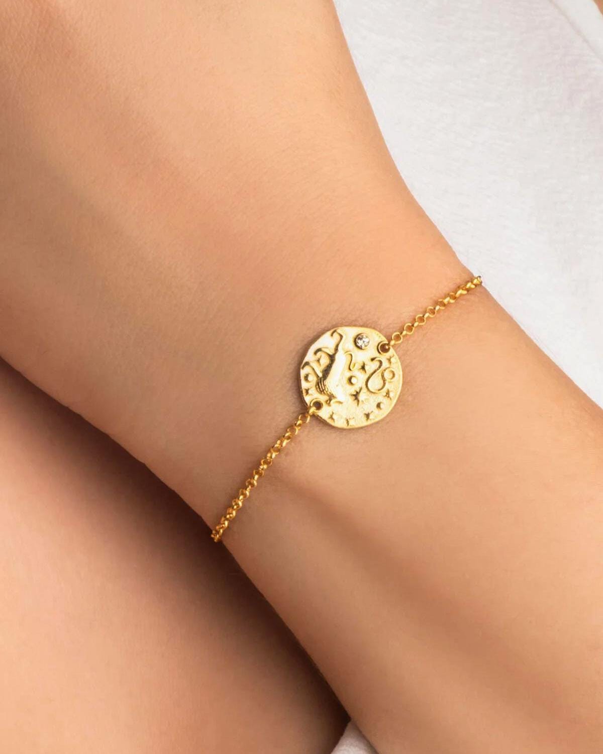 This elegant Leo zodiac bracelet is crafted from 925 sterling silver and finished with 18K yellow gold plating for a luxurious and lasting shine.
